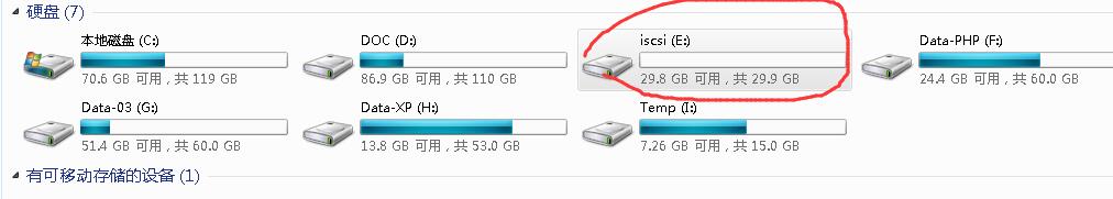 然后,在客戶端(以windows 7為例),看一下,如何連接ISCSI,請(qǐng)?jiān)L問《windows server 2008R2部署ISCSI》。