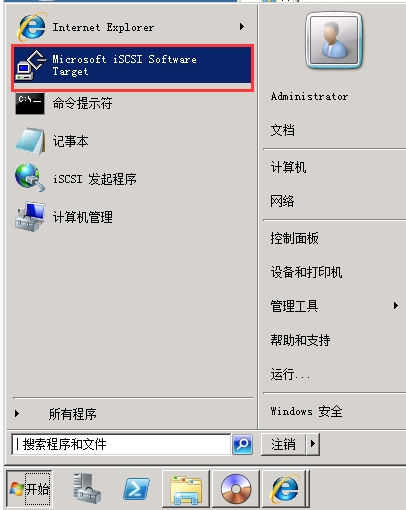 點(diǎn)擊開始,找到Microsoft iSCSI Software Target,并打開